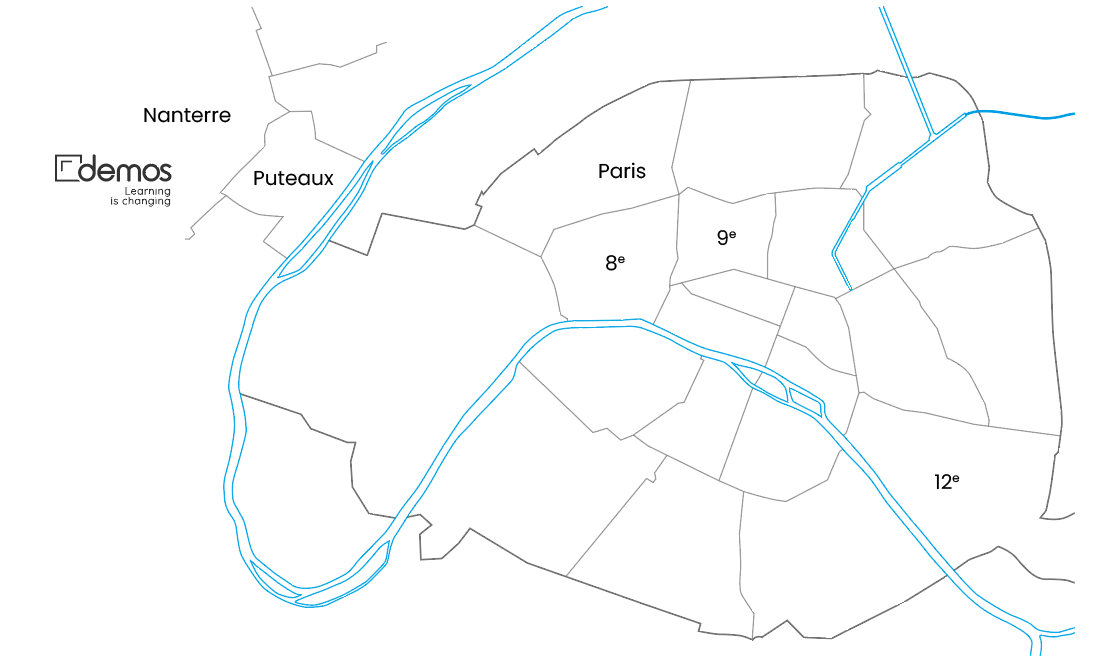 Chez Demos, nous croyons fermement en la proximité et en l’accessibilité de la formation professionnelle. C’est pourquoi nous dispensons nos formations dans plusieurs centres de formation à Paris et en régions, afin d’être plus proches de vous. Idéalement situés, nos centres de formation sont facilement accessibles aussi bien en transports en commun qu’en voiture.